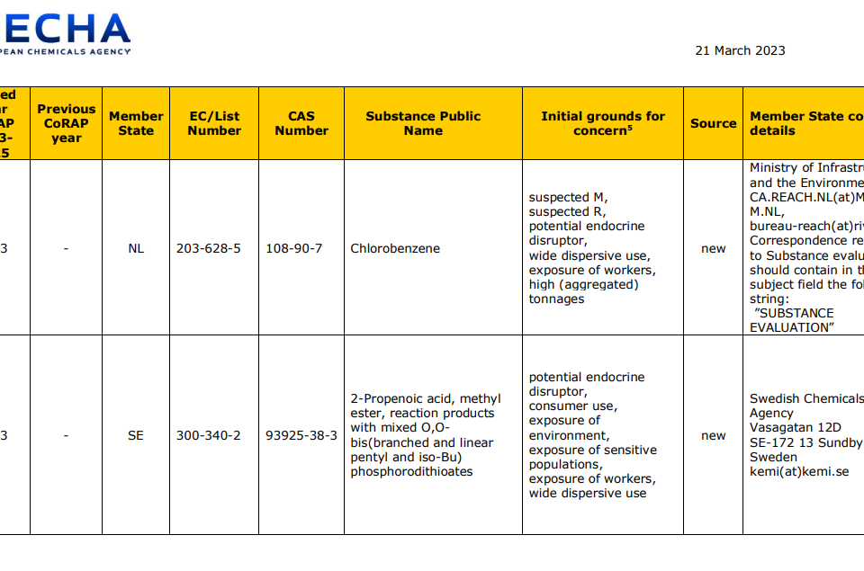 La ECHA presenta una nueva actualización del Plan de Acción Continua de la Comunidad CoRAP 2023-2025 para la evaluación de sustancias